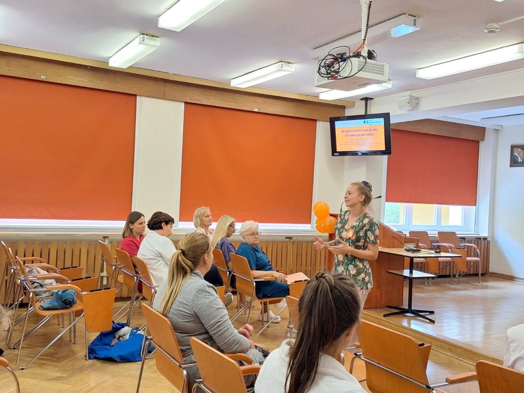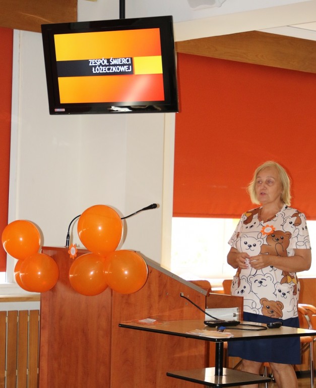 na zagadnieniu SIDS- zespołu nagłej śmierci łóżeczkowej. W swoim wystąpieniu podkreśliła, jak istotne jest odpowiednie przygotowanie miejsca snu dziecka, prawidłowe pozycjonowanie niemowlęcia, a także unikanie czynników zwiększających ryzyko SIDS, takich jak np. przegrzewanie dziecka, spanie w jednym łóżku z rodzicami czy obecność miękkich przedmiotów w łóżeczku. Ważnym elementem opieki nad noworodkiem jest również unikanie ekspozycji dziecka na dym tytoniowy oraz utrzymywanie odpowiedniej temperatury w pomieszczeniu (ok. 18–20°C).