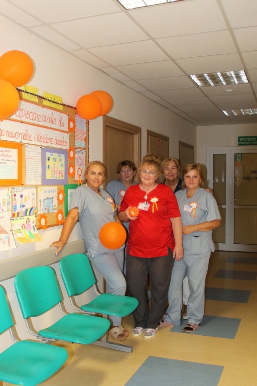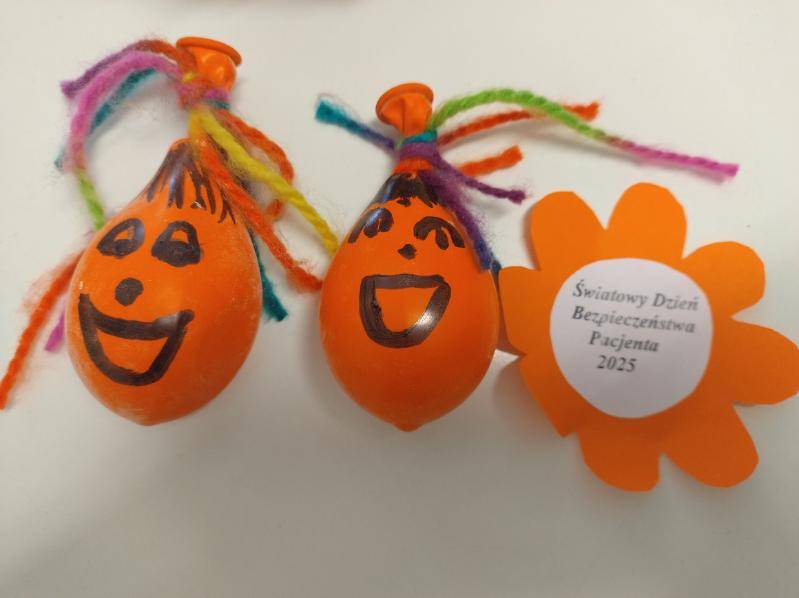 Jednym z elementów obchodów tego dnia było również przygotowanie pomarańczowych kotylionów - symboliczne nawiązanie do koloru Światowego Dnia Bezpieczeństwa Pacjenta. Barwa ta była również obecna w dekoracjach Oddziałów oraz w ubiorze personelu Oddziału Pediatrii i Kardiologii Dziecięcej, co stworzyło spójną, przyjazną