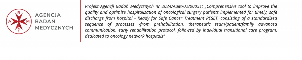 Wojewódzki Szpital Specjalistyczny we Wrocławiu, Ośrodek Badawczo-Rozwojowy realizuje, we współpracy z 4. Wojskowym Szpitalem Klinicznym z Polikliniką Samodzielnym Publicznym Zakładem Opieki Zdrowotnej we Wrocławiu oraz Siecią Badawczą Łukasiewicz ‐ PORT Polskim Ośrodkiem Rozwoju Technologii, projekt badawczy pt.: „Comprehensive tool to improve the quality and optimize hospitalization of oncological surgery patients implemented for timely, safe discharge from hospital - Ready for Safe Cancer Treatment RESET, consisting of a standardized sequence of processes -from prehabilitation, therapeutic team/patient/family advanced communication, early rehabilitation protocol, followed by individual transitional care program, dedicated to oncology network hospitals”. Przedsięwzięcie jest finansowane ze środków Agencji Badań Medycznych (nr 2024/ABM/02/0051) i ma na celu opracowanie kompleksowego narzędzia, które usprawni i ustandaryzuje proces opieki nad pacjentami poddawanymi operacjom onkologicznym.